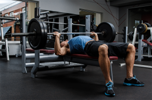 Lying back in a flat bench press rack with a barbell in your hand, slowly lower the barbell to your chest, followed by a quick, but well controlled push of the barbell higher and then lowering it to your chest once again, taking care to keep your core muscles shaped throughout the process. When you first start bench press training, try 3-4 sets of 8-10 reps each for frequency training.