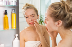 Solution: Choose gentle cleansers and use them once in the morning and once at night. Pat toner onto your face using a cotton pad to provide hydration and seal in moisture.